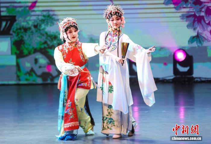 中新网长沙2月3日电 (邓霞 毛旭阳)花鼓戏经典片段串烧《花鼓唱起来》、融合濒危剧种声腔与表演形式的巴陵戏《沁园春·雪》、加入戏曲元素的民族声乐《报春花开》……2月2日晚,湖南省第四届“梨园小将·闹新春”少儿戏曲春晚在长沙上演,14个精品节目一一上演,吸引了众多戏曲爱好者现场观看。