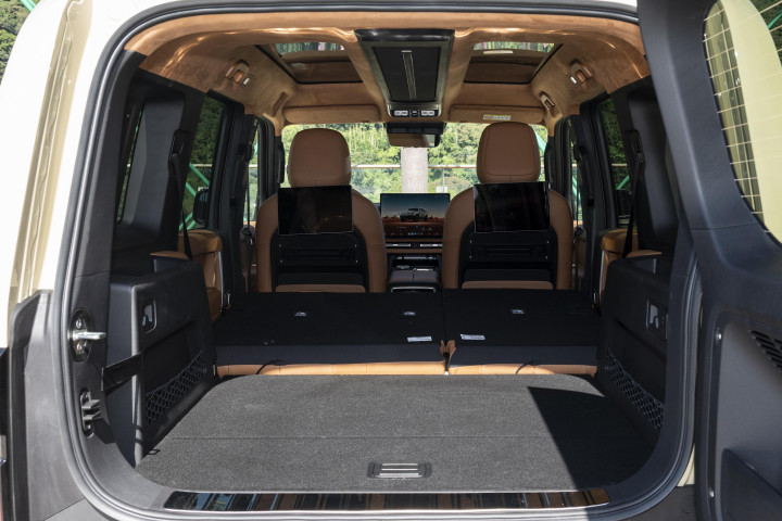 车身侧面线条格外硬朗,超低的窗线配上大面积的车窗,不仅看起来通透,本色开起来视线也会很好。车尾提供了小书包和全尺寸备胎两种格调可选,侧开式的尾门亦然硬派SUV的经典元素。官方提供了卡其白、新碳晶黑、银色、瓷器灰、瓷器蓝、浅驼色、沙漠黄一共七种颜料,能餍足不同口味的个性化需求。