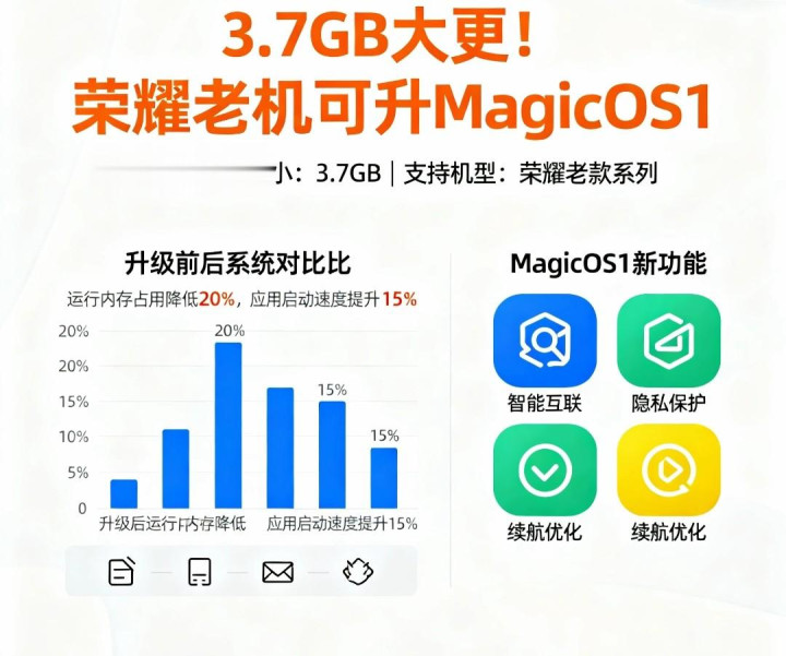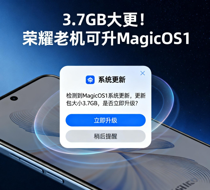 惊喜,荣耀老机型迎来 MagicOS 10 更新了,旧手机也能焕新,不用换手机也能体验新系统了,更新包大小 3.7GB,不大不小的。
