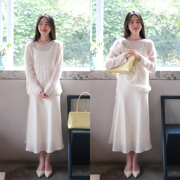 同色系穿搭尽显高档质感,选米白色毛衣,宽松版型慵懒又即兴。搭配同色系丝绸半裙,柔和面料增添优雅韵味,斗鱼app登录行走间灵动标记。脚踩尖头平底鞋,拉长腿部线条。合座色谐和谐,端倪丰富,削弱营造出和煦又大气的前锋氛围。
