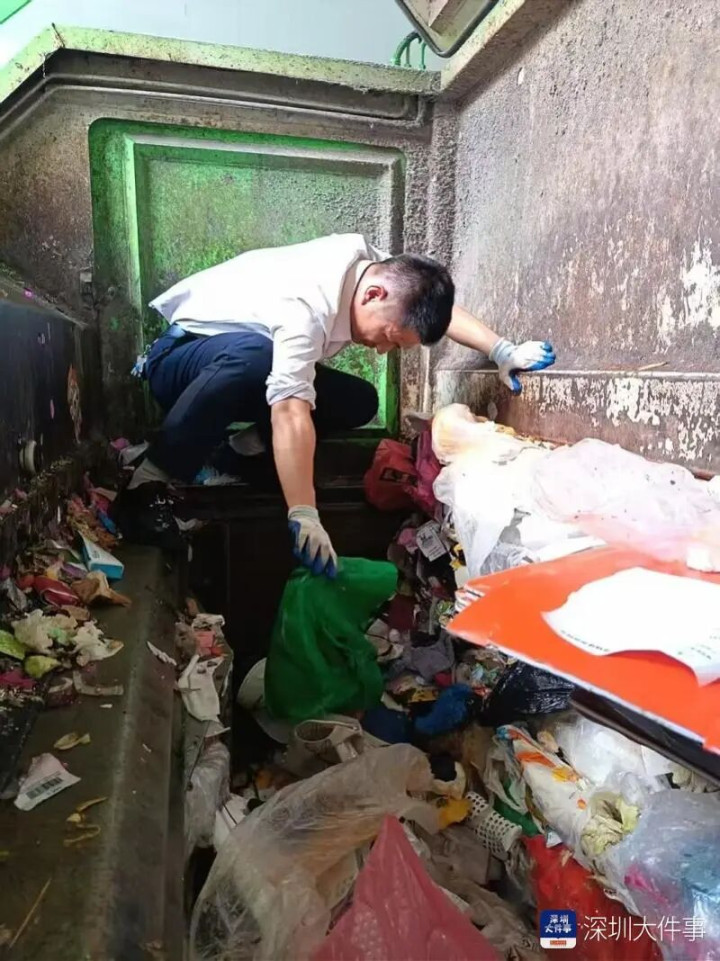 2月15日,深圳鸿荣源壹成中心一业主孩子误将装有10万元现款的包裹扔进小区垃圾分类点。这笔钱随后被清运至中转站,混入13吨压缩垃圾中,情况挫折。