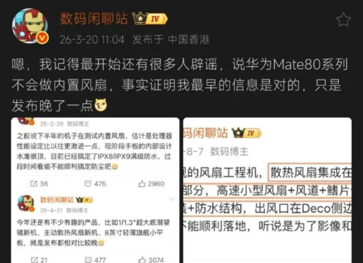 此次更绝。3月23日,发布会前72小时,华为官网一霎挂出Mate 80 Pro Max风驰版,6.9英寸,双层OLED,仿生羽翼涡扇散热。我翻着站哥8个月前的爆料截图对了三遍:电扇埋在镜头模组下面,鳍片袖珍密封,出风口开在模组侧边,防水贪图……一模不异,连螺丝孔位角度皆像。这仍是不是“偶合对上”,斗鱼app登录是供应链图纸级同步。
