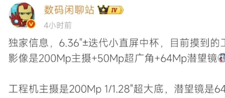 上周末刷到@数码谈天站那条“小直屏工程机摸到了”的微博,我手一抖把刚倒的茶全洒在键盘上——不是夸张,是真是心口突突跳。6.36英寸,小直屏,中杯定位,影像堆料平直拉满,连红枫影像系统皆上了二代。这哪是测试机,分明是给小屏党写的“情书”。