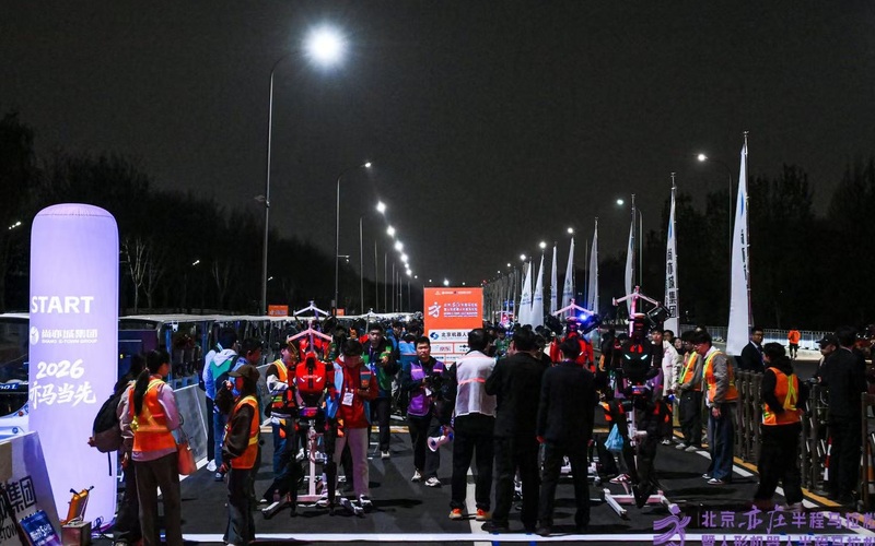 4月12日凌晨的北京经济本领拓荒区,70余支东谈主形机器东谈主军队在这里集中,为4月19日行将鸣枪的2026北京亦庄半程马拉松暨东谈主形机器东谈主半程马拉松,进行全经过全要素测试。其中,包含4支海外赛队,自主导航赛队和遥控赛队同场测试。