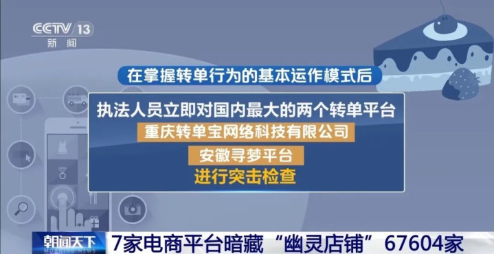 国法东谈主员立即对国内最大的两个转单平台——重庆转单宝麇集科技有限公司和安徽寻梦平台进行突击稽查,适度骄贵,至少有七家电商平台存在蛋糕违章转单算作,转单总和360多万单,订单金额逾越一亿元。